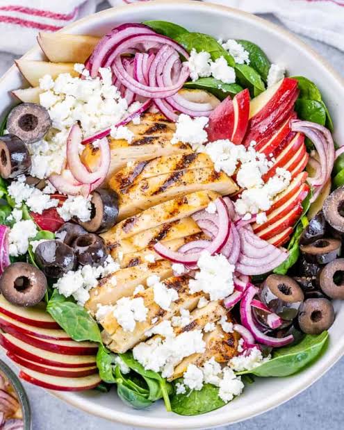 Ready to turn your mealtime into a culinary masterpiece? Our Grilled Chicken, Apple, Feta, and Spinach Salad is the ideal choice. This salad combines succulent grilled chicken, crisp apple slices, creamy feta cheese, and vibrant spinach leaves, resulting in a dish that's not just delicious but also a work of art on your plate. It's a healthy and flavorful ensemble that's perfect for a light lunch or a refreshing dinner. Whether you're looking to impress guests with a gourmet salad or simply savoring a fulfilling meal, this recipe will delight your taste buds. Discover how to create your own Grilled Chicken, Apple, Feta, and Spinach Salad and enjoy a symphony of freshness and flavor in every bite.