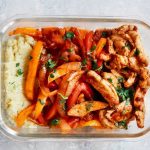 Slice the grilled chicken and the apples to your desired size.